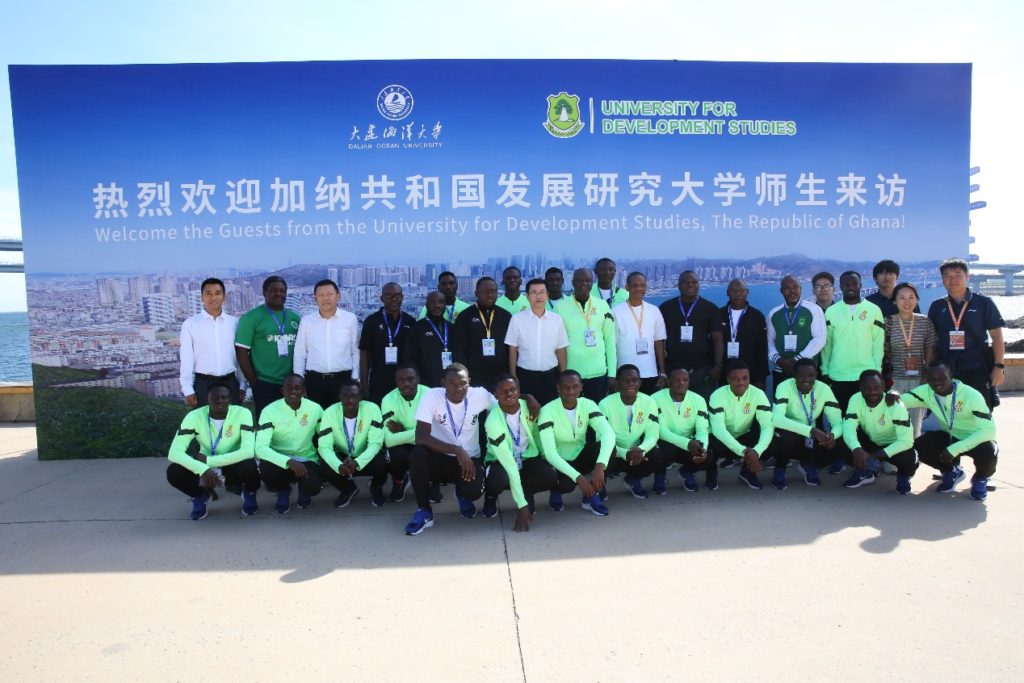 As part of the series of events leading up to the 2025 FISU University World Cup Football, the men’s football team from the University for Development Studies (UDS), Ghana, visited the Heishiijiao Campus of Dalian Ocean University (DOU) for a tour and exchange on the afternoon of September 21. The delegation was warmly received by Vice President Liu Wenhe, who was accompanied by heads of relevant departments including Zheng Peng, Director of the International Exchange and Cooperation Office, and the Director of the Sports Department.