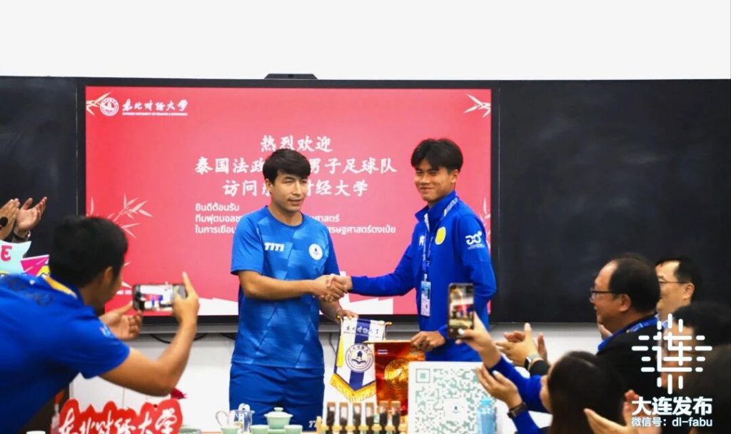 In recent days, Dongbei University of Finance and Economics (DUFE) welcomed two visiting men’s football teams—the University of Granada (Spain) and Thailand’s Thammasat University—for a campus tour and exchange.